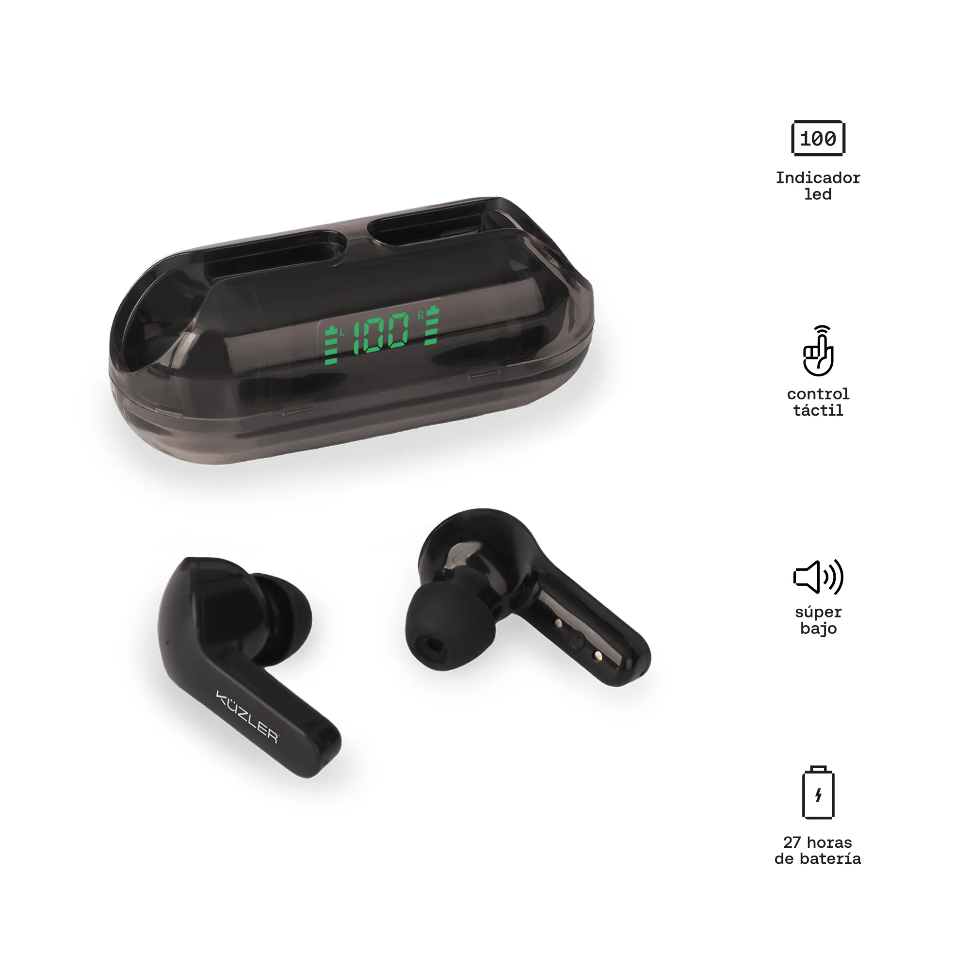Descubre la libertad del audio sin cables con los Küzler EARPILL-101. Estos audífonos TWS (True Wireless Stereo) combinan un diseño ergonómico in-ear con una potencia de bajos sorprendente, ideales para quienes buscan un dispositivo ligero, resistente y con una autonomía que aguante el ritmo de toda la semana.