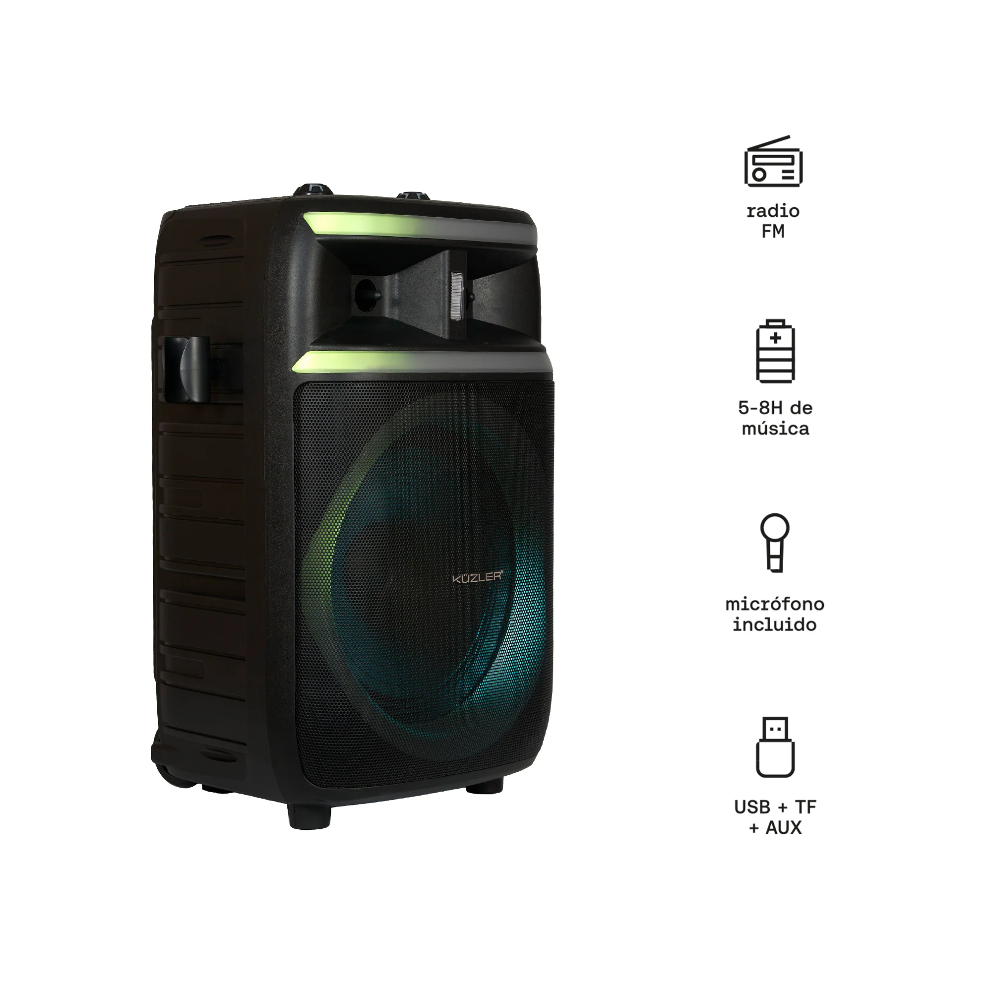 Lleva la fiesta a cualquier lugar con el Küzler FREQON-101, un sistema de audio tipo torre diseñado para quienes buscan potencia real y fidelidad sonora. Con su imponente salida de 1000W, este parlante no solo suena fuerte, sino que mantiene una claridad excepcional en cada nota, convirtiéndose en el centro de atención de cualquier reunión o karaoke.